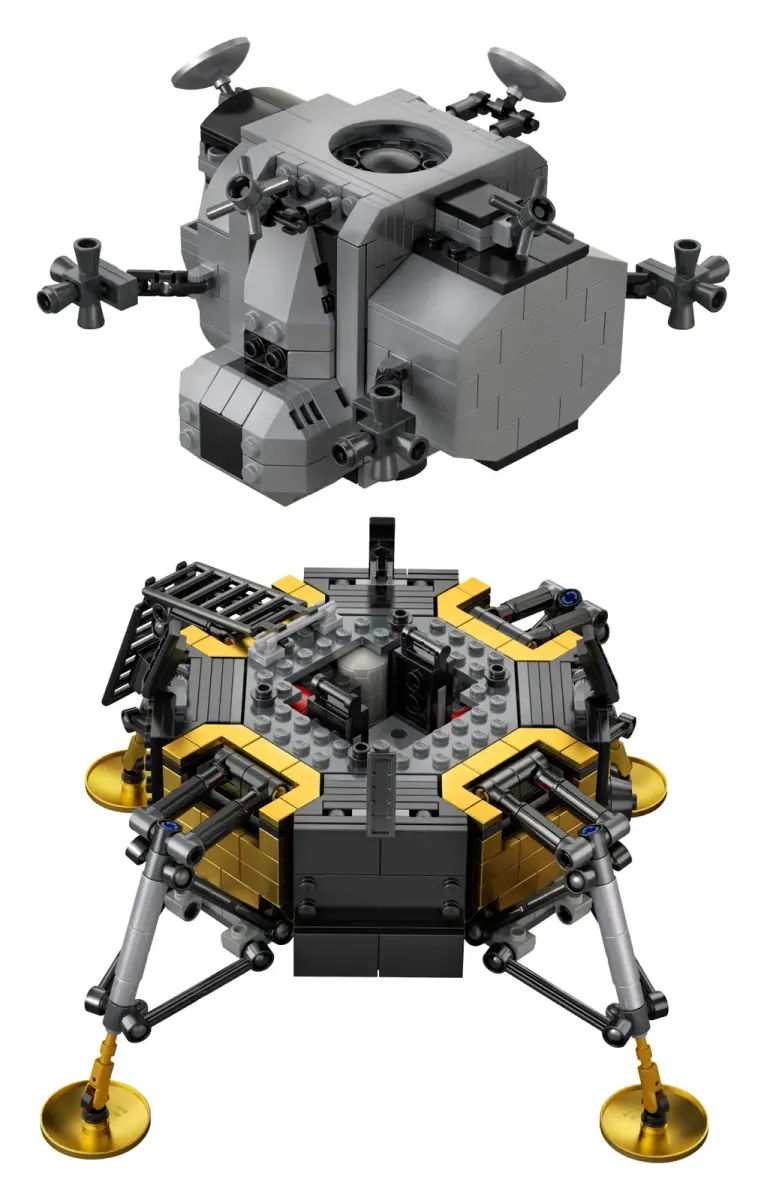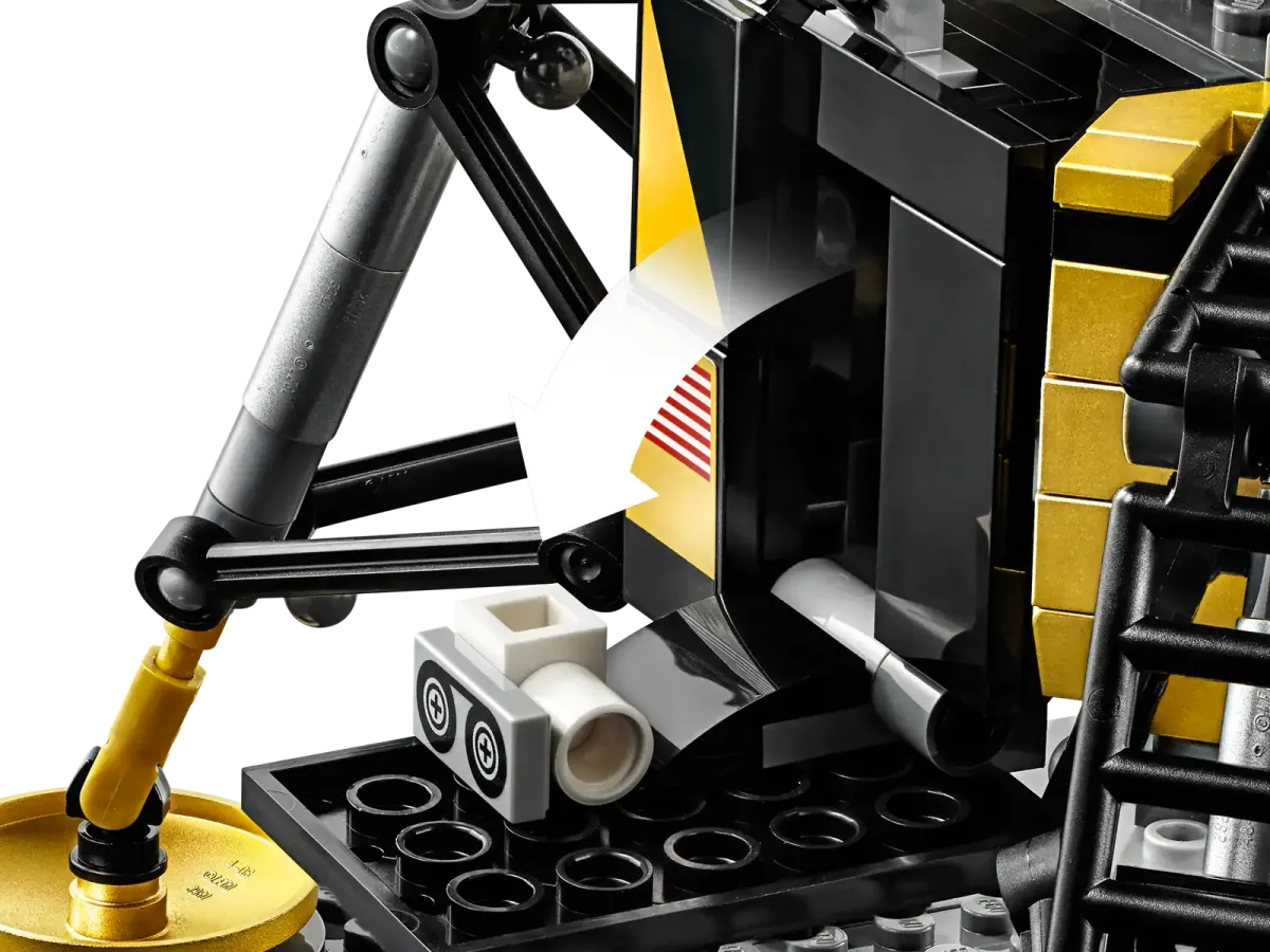 Celebrate man’s first moon landing with this LEGO® Creator Expert 10266 NASA Apollo 11 Lunar Lander building set—developed in cooperation with NASA to mark the 50th anniversary of a historical event that captivated the world. This collectible model features a highly detailed replica of Apollo 11's Eagle lunar module, plus a depiction of the lunar surface, complete with crater, footprints and a U.S. flag. The descent stage comes with gold-colored landing pads and panels, opening camera and laser hatches, and a ladder, while the ascent stage has a detailed interior with room for 2 astronauts. Finished with an Apollo 11 Lunar Lander nameplate, this display model makes a great centerpiece for the home or office and provides a challenging and rewarding building experience full of nostalgia. Includes 2 astronaut minifigures with NASA decoration and golden helmets.