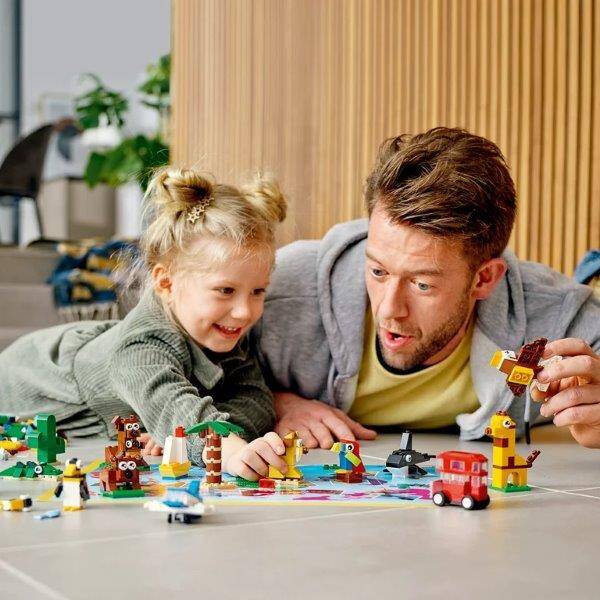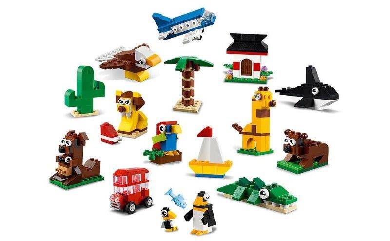 The LEGO® Classic Around the World (11015) playset comes with 15 build ideas based on iconic animals and objects from around the world. Kids also get a colorful wall map to show the home continent of each animal and plant. And with such a wide variety of LEGO pieces, plus lots of extra bricks in the box, open-ended creativity is free to flow.