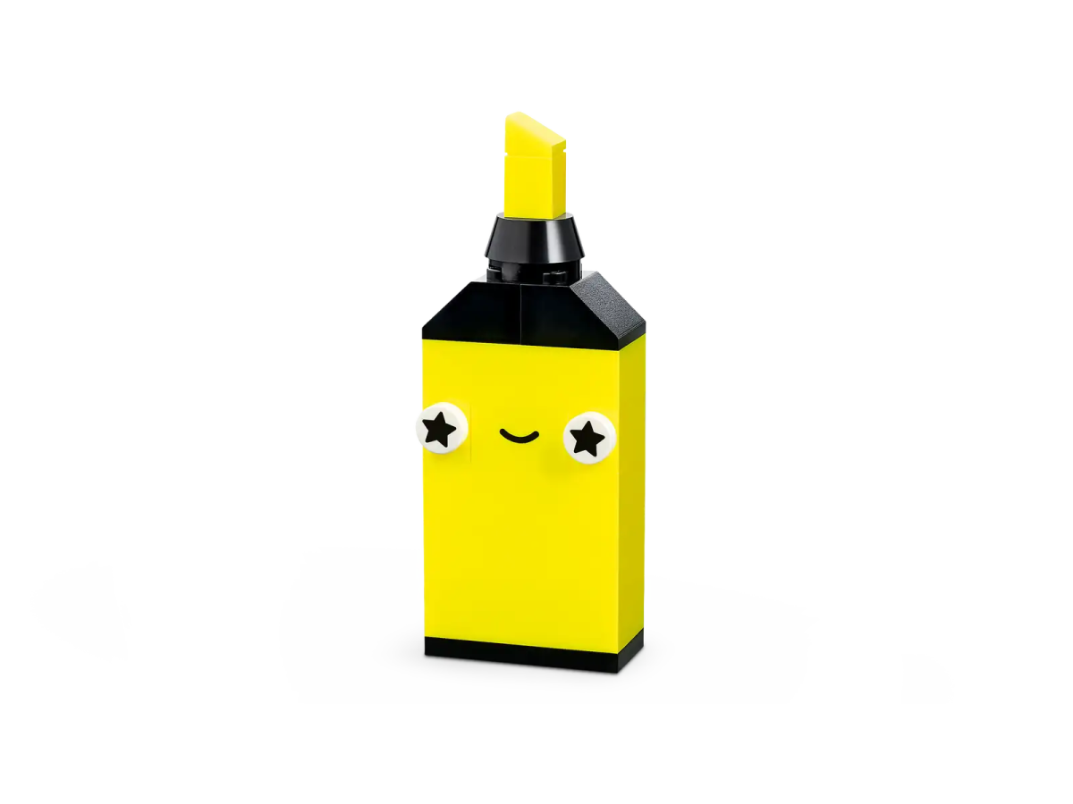 This versatile building kit contains 333 bricks in various sizes and vibrant neon colors. 18 of the bricks feature expressive eyes that kids can use to bring their creations to life. Printed building instructions are included for 5 fun models – a pineapple, highlighter pen, car, alien and roller skates – giving kids the creative confidence they need to build whatever they imagine! A digital version of the set’s building instructions can also be found within the LEGO Builder app.