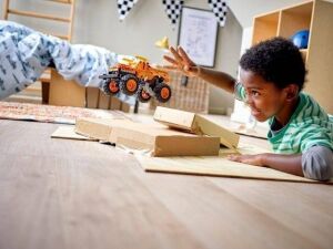 There’s lots to discover in this building set. When kids want a new challenge, they can rebuild their monster truck toy into a pull-back Rock Racer. This all-terrain race vehicle also features an authentic safety cage in the cab.